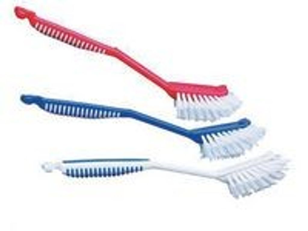 Beskrivning av Diskborste VILEDA sorterade färger 30/fp Slitstark diskborste med ergonomiskt skaft. Diskborste Vileda 3 sorterade färger, röd, blå, vit. Stomme av polypropen och polymer, borst av nylon. - Färg: röd, blå eller vit - Mått: 25 x 6,5 cm