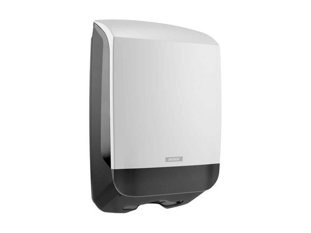 Handdukslösning för vikta pappershanddukar. Hygienisk lösning där besökaren enbart vidrör det ark som ska användas. Kontrasterande färg för synlighet på väggen. Transparant bakstycke för enklare montering. Lätt att kontrollera pappersnivån, tack vare transparanta sidopanele.r Stöd som håller pappret på plats och underlättar påfyllning. Material, ABS (Acrylonitrile butadiene styrene), PC (Polycarbonate), POM (Polyoxymethylene). Passar samtliga Katrins pappersvikningar. Välj mellan kvalitetsnivåerna Katrin - bra prestanda för alla behov och Katrin Plus - bäst prestanda för extra omsorg, både för miljön, hygienen och besökaren. - Längd: 142mm - Djup: 310 mm - Höjd: 445mm