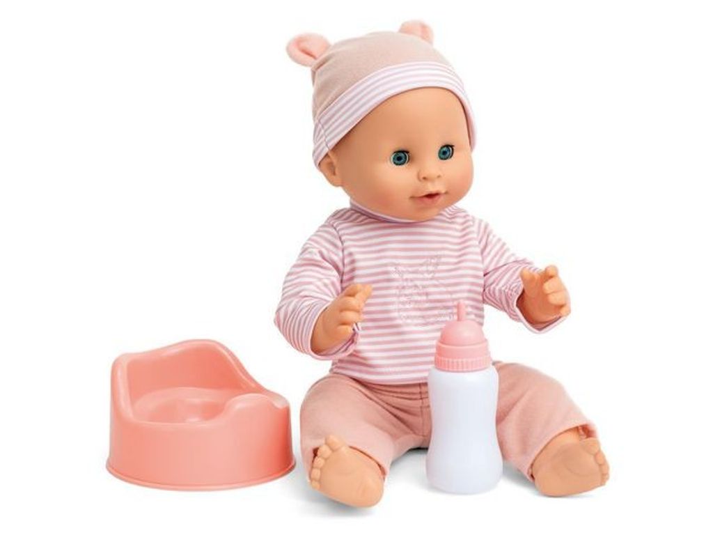 Babydockan Sara kan både dricka och kissa. Mata henne med nappflaska och potträna sen på medföljande potta, liten börjar bli stor. Dockan är 40 cm lång och blundar när man lägger henne ner för en sovstund. - Rekommenderad ålder: 12 M+ - Material: plast och textil - Mått: 40 x 15 x 8cm - Tvättråd: endast handtvätt - Ftalatfri PVC