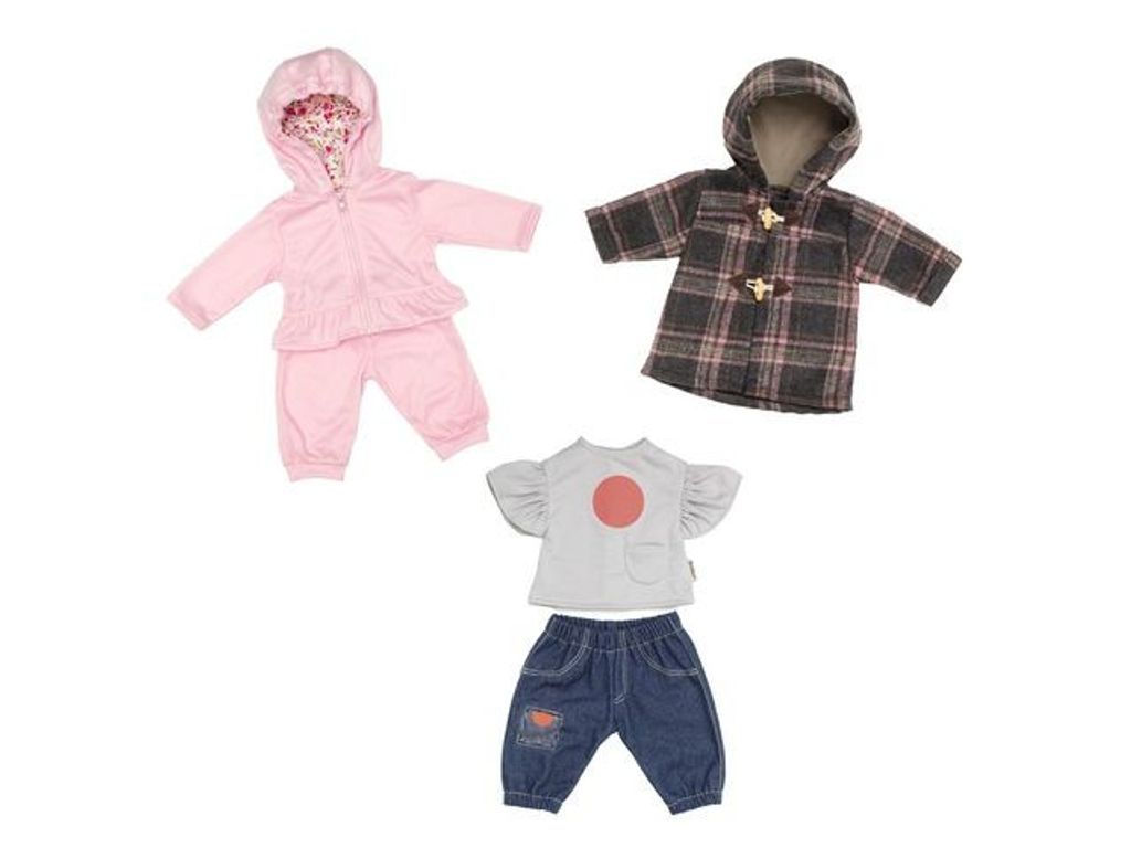 Låt fantasin och kreativiteten släppa lös samtidigt som motoriken får övning. Detta set innehåller en luvjacka och ett par byxor i mjuk jersey, perfekt för en dag av lek och skoj. Tillsätt lite extra stil till Skrållans garderob med trendig duffeljacka och ett set med jeans och top. Dessa dockkläder är lika bekväma som de är trendiga och är redo för alla äventyr som väntar runt hörnet! Låt din Skrållan stråla i dessa charmiga och praktiska outfits! Notera att innehållet kan variera. - Rekommenderad ålder: 3+ - Passar dockor 45cm - Material: 100% polyester - Mått: 35x39x3,5 cm - Tvättråd: endast handtvätt - Varning. Lämpar sig inte för barn under 3 år