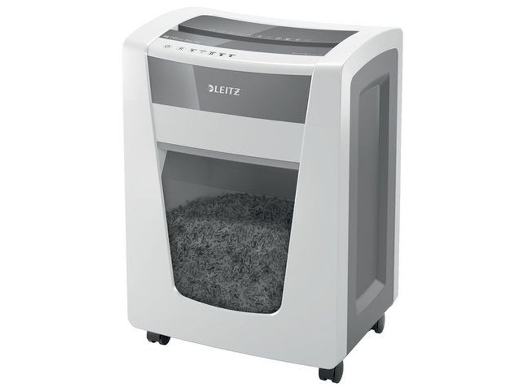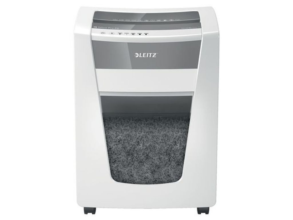 Dokumentförstöraren Leitz IQ Office Pro erbjuder stil, prestanda och säkerhet. Den här modellen har högpresterande säkerhetsklassade DIN P5 korsskärning för hög säkerhet och avfallskomprimering. Perfekt säker makulering varje gång - perfekt för kontorsanvändning. Högre säkerhet och utmärkt prestanda med denna trasselfria, tysta dokumentförstörare med lång drifttid. Skär ned 15 ark A4 i mindre mikrostora bitar i den generösa 30-liters behållaren via användning med hjälp av touch-kontroller. Strimla längre med en klassledande 4 timmars drifttid, för en fullständigt oavbruten makulering. Vi rekommenderar att man använder oljeark var tredje gång man tömmer dokumentförstörarens avfallsbehållare. - Tyst och flyttbar professionell dokumentförstörare med P5-säkerhet - Pekkontroller för enkel användning - Teknik för att förhindra papperstrassel med funktion för att backa ark - Strimlar upp till 1,8 m/minut - Strimlar även gem och häftklamrar - Skärtyp: Mikrobitar - Säkerhetsnivå: P5 - Skärbredd: 15 mm - Skärkapacitet: 15 ark - Pappersuppsamlarens kapacitet: 30 liter - Mått: 406 x 537 x 320 mm (B x H x D) - Vikt: 22 kg - Garanti: upp till 3 år - Färg: Vit