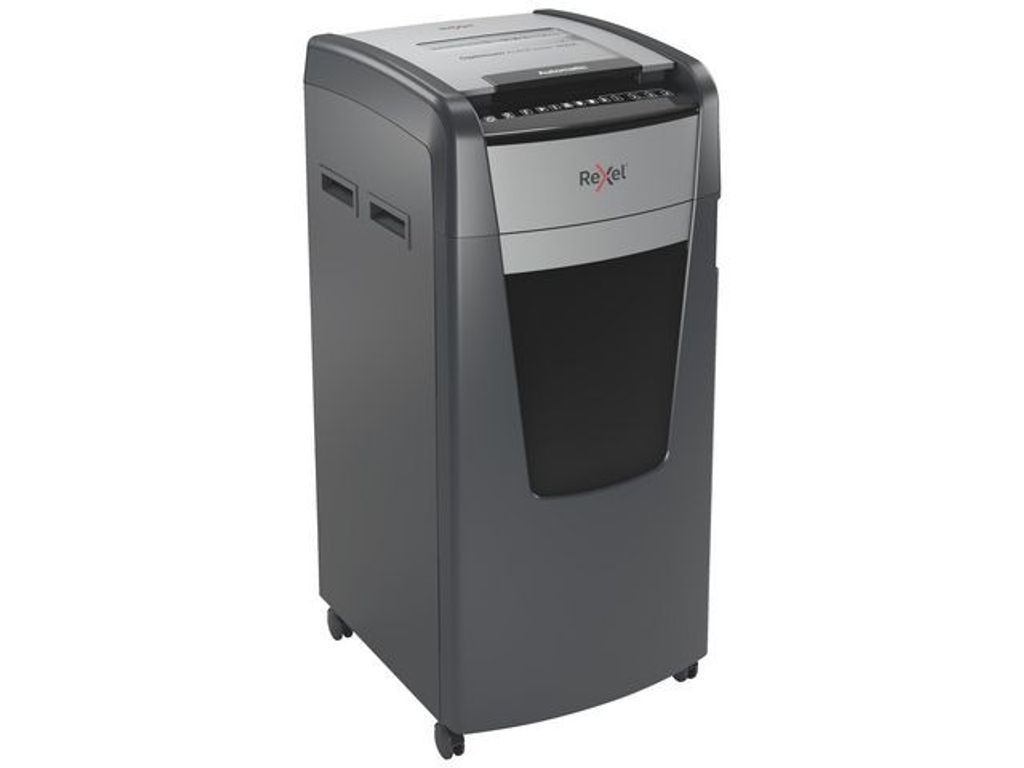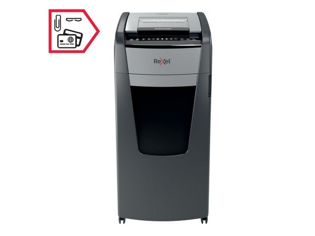 Den här automatiska dokumentförstöraren gör allt arbete åt dig. Optimum AutoFeed+ 600X makulerar automatiskt upp till 600 A4 pappersark (80 g/m2) åt gången, i P-4 (4x36 mm) tvärsnitt. Dokumentförstöraren som har automatisk inmatning är idealisk för användning på kontoret på grund av dess kompakta utdragbara 110L-avfallsbehållare. Du behöver inte mata papper manuellt eller ta bort häftklamrar och gem innan dokumentet ska förstöras. Den här automatiska dokumentförstöraren gör allt arbete åt dig. Vi rekommenderar att man använder oljeark var tredje gång man tömmer dokumentförstörarens avfallsbehållare. - Automatisk makulering av upp till 600 ark A4 papper (80 g/m2) på en gång - Springa för manuell inmatning av upp till 15 ark - Skärtyp: korsskärning (4x30 mm) - Säkerhetsnivå: P4 - 110L högkapacitetskåp - Dispenser för plastpåsar på insidan av dörren för bekvämt byte vid tömning - 4 hjul för att kunna förflytta maskinen på arbetsplatsen - Anti-jam teknologi - Makulerar kreditkort, häftklamrar och gem - 240 minuter kontinuerlig drift med fläktkylning - Viloläge aktiveras efter 3 minuters inaktivitet - Touch-kontrollpanel med pin-kodlås för ultimat sekretess och säkerhet - 55 dBA tyst ljudnivå - Infraröd sensor visar full avfallsbehållare - 2 års garanti, 2 år skärverkgaranti