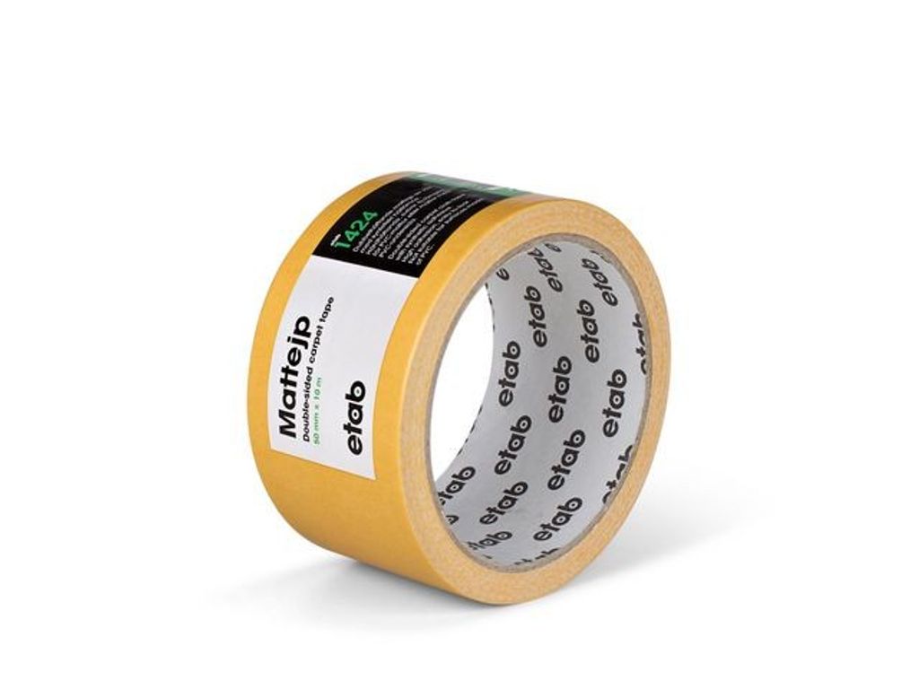 etab 1424 är en dubbelhäftande mattejp som används för mattläggning av mjuka mattor på golv av trä, betong och spånskiva. etab 1424 är en dubbelhäftande mattejp som används för mattläggning av mjuka mattor på golv av trä, betong och spånskiva. Hårdhäftande samtidigt som den är lätt att riva av för hand. Ej lämplig för PVC-mattor eller mattor med PVC-undersida. etab 1424 är gjord av bomullsväv med syntetiskt häftämne. Med skyddsliner. - Mått: 50mmx10m