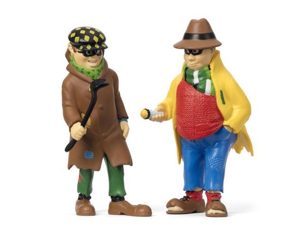 Figurset med tjuvarna Dunder-Karlsson och Blom. De här två fattiga luffarna ses ofta där Pippi Långstrump är. Se upp, så de inte kommer in i Villa Villekulla och tar alla Pippis guldpengar! - Material: TPR-plast - Ftalat- och PVC-fri - Rekommenderad ålder: +3 - Mått: 11cm - Varning. Lämpar sig inte för barn under 3 år