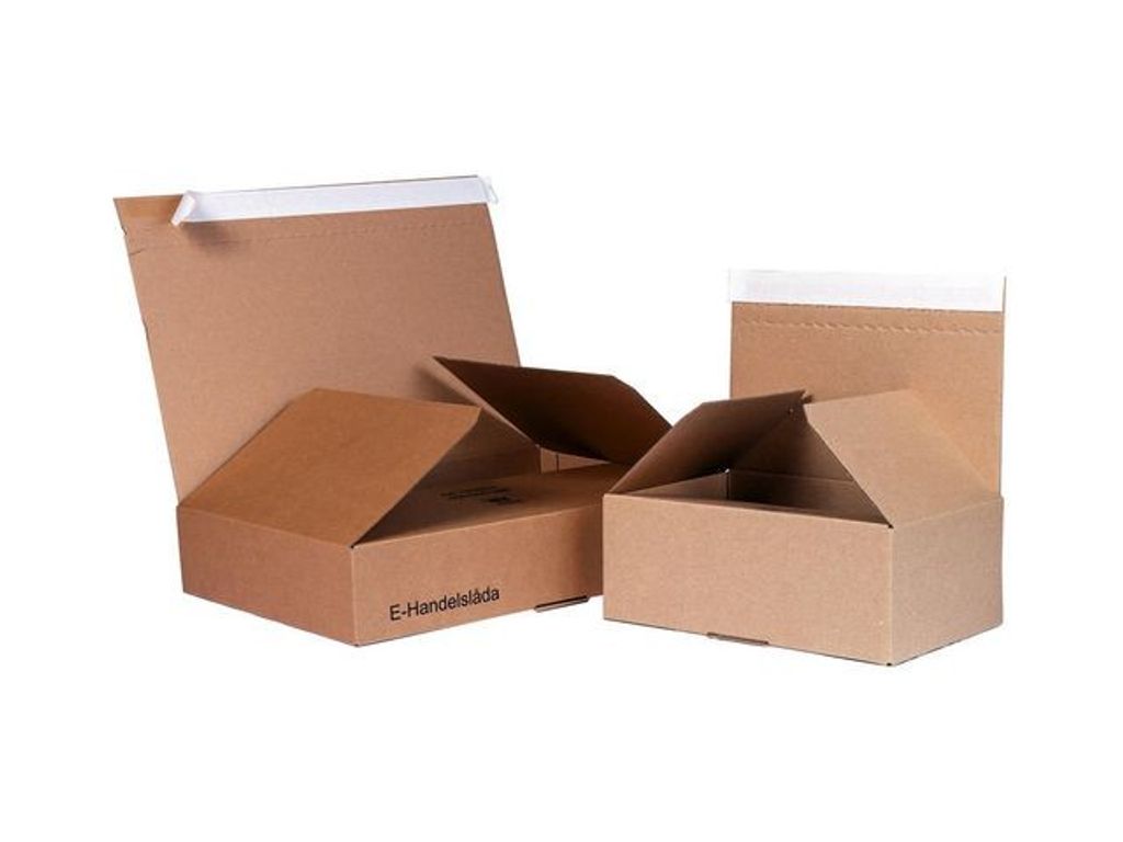 Beskrivning av E-handelslåda 350x247x66mm E-handelslåda speciellt anpassad för att skickas med posten. Konstruerad för att enkelt förslutas och öppnas. - Mått: 350x247x66mm