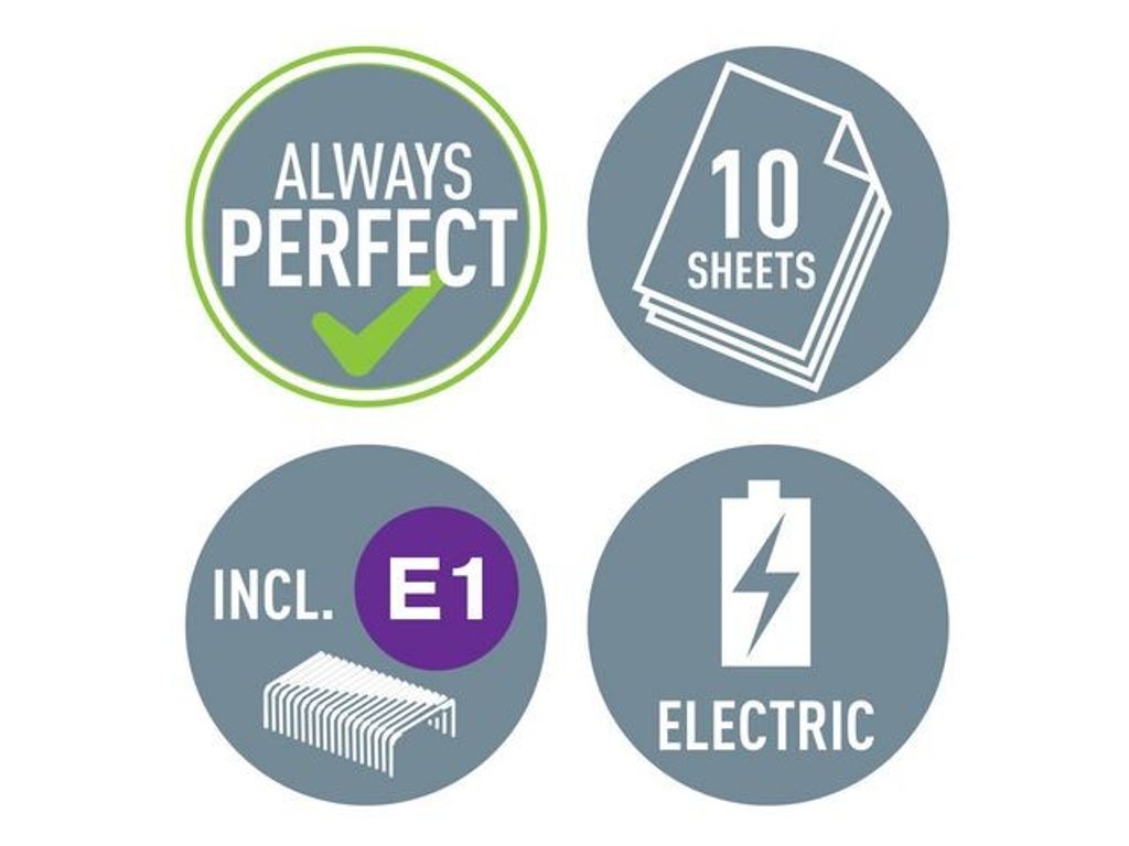 Enkel enhands-häftning, idealisk för frekvent användning. Iögonfallande modern design och färg. Batteri för bekväm användning under resa. Leitz Electric häftklammer E1 garanterar perfekt häftning varje gång. - Häftar upp till 10 ark papper ( 80 g/m2) - Enkel häftning med en hand - Snyggt tillägg till ditt skrivbord och perfekt för användning under resa tack vare batteridrift (4x AAA-batterier, ingår ej) - Ge din arbetsplats eller ditt hem en WOW-faktor med detta sortiment av produkter i slående och eleganta färger - Diagonal häftning möjlig - Använd med Leitz E1 häftklammer för problemfri häftning - GS-testad och 3 års garanti vid användning med Leitz klammer - 3 års garanti vid användning med Leitz häftklammer och GS-säkerhetstestad