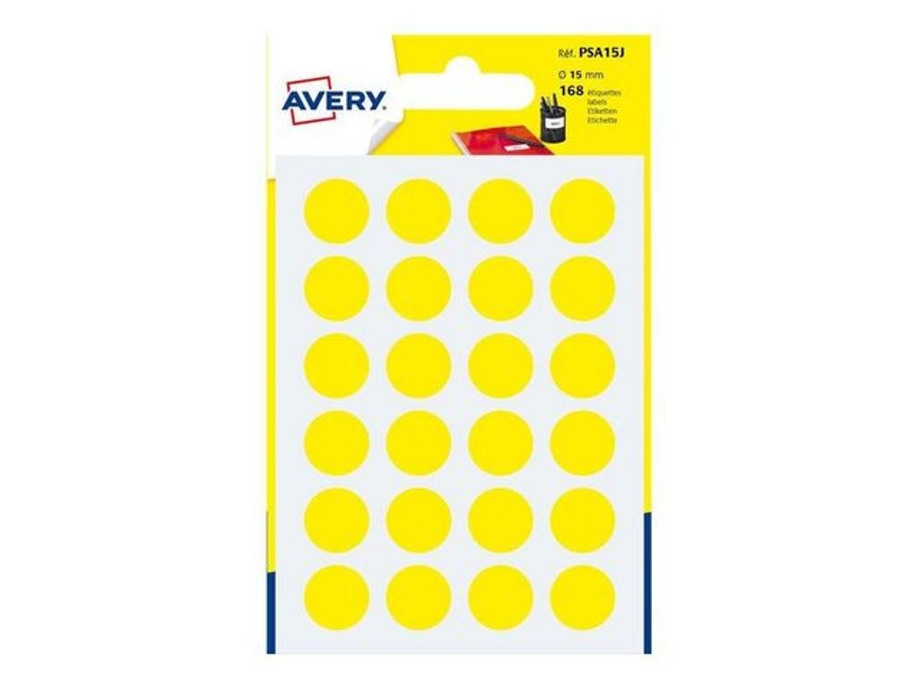Beskrivning av Etikett AVERY 15mm gul 168/fp