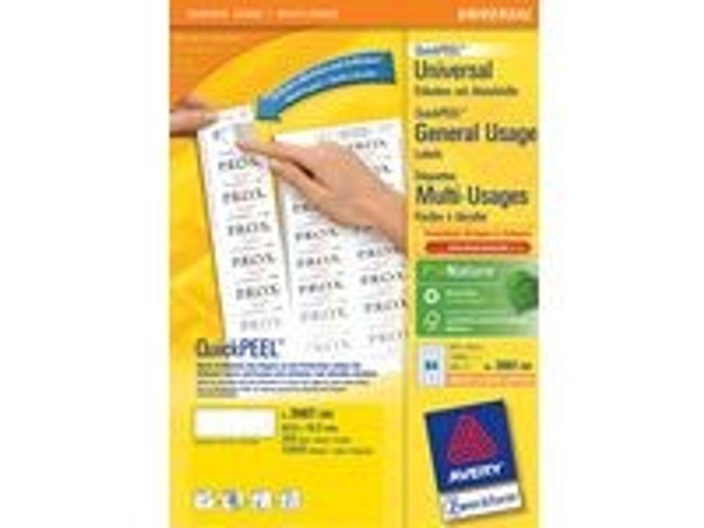 Etiketterna är lämpliga för en rad olika användningsområden där du behöver använda permanent märkning, t.ex. adressetiketter på små brev, märkning av föremål eller organisering av mappar. Universaletiketter med QuickPEEL och Ultragrip för inomhusbruk. De fäster säkert, tillförlitligt och permanent på alla slags släta ytor. Papperskvaliteten är optimerad så att du får snygga och knivskarpa utskrifter oavsett vilken typ av skrivare du använder. Du kan enkelt - och helt gratis - designa och skriva ut dina Avery-produkter med vår mjukvara Avery Design & Print, som innehåller mallar, grafik och designmöjligheter. Läs mer om mjukvaran här: www.avery.se/programvara - FSC, PVC-fritt, Klorfri blekt materia - Mått: 48,5x16,9mm - Format: A4 - Form: Rektangulär
