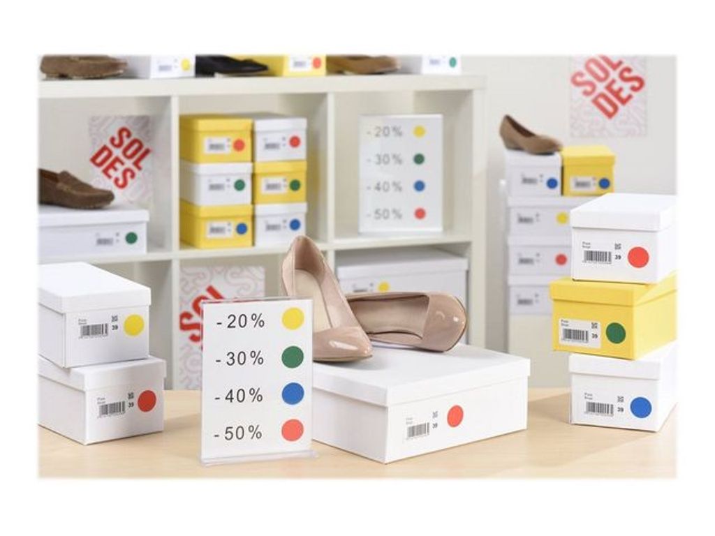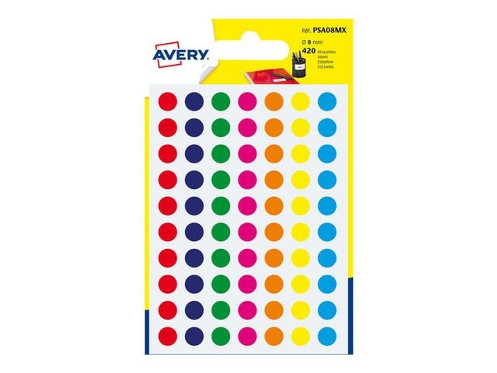 Beskrivning av Etikett AVERY 8mm blandade färger 420/fp