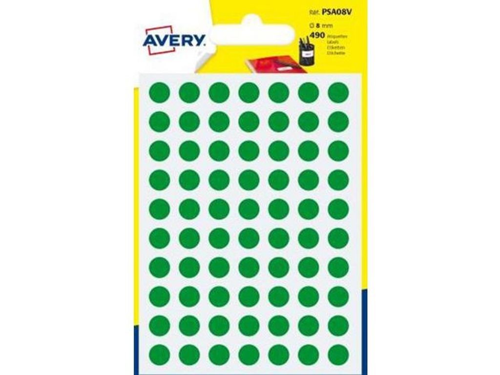 Beskrivning av Etikett AVERY 8mm grön 490/fp
