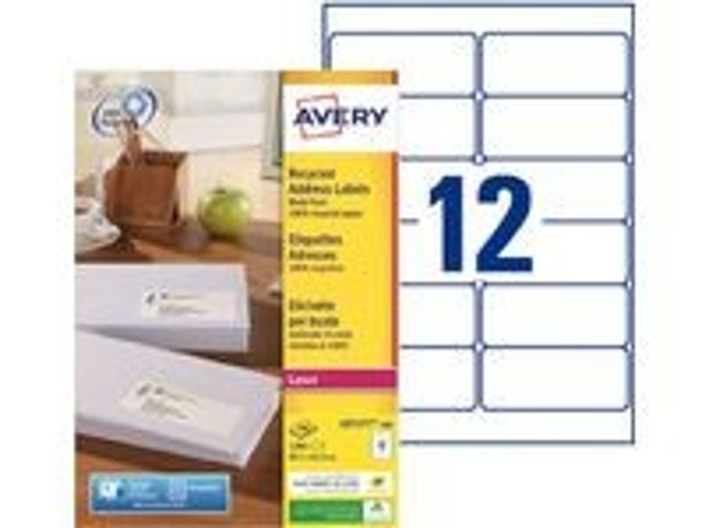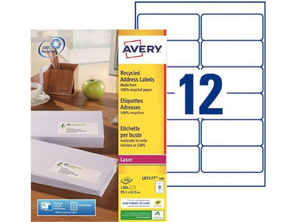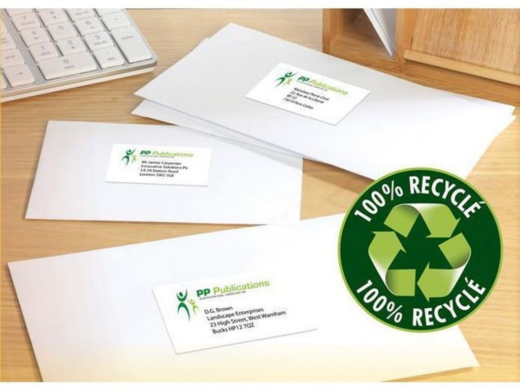 Etiketter som ger fina och knivskarpa utskrifter oavsett skrivare. Avery QuickPEEL-etiketter av 100 % återvunnet papper med 12 etiketter per ark och 1200 etiketter per förpackning. Tillverkade av 100 % återvunnet papper, har ett vattenbaserat och mer miljövänligt lim samt är förpackade i återvunnen kartong. Produktionen av dessa etiketter är utformad för att undvika onödig avskogning samt förbruka mindre energi och vatten. Averys JamFREE™-garanti säkerställer att du inte behöver bekymra dig för om etiketterna fastnar i skrivaren och orsakar stopp. Med en pålitlig och permanent vidhäftning. På www.avery.se/programvara hittar du massor av mallar som du kan använda för att enkelt och GRATIS designa och skriva ut dina Avery-etiketter. - Mått: 991 x 423mm - Antal: 1200/fp