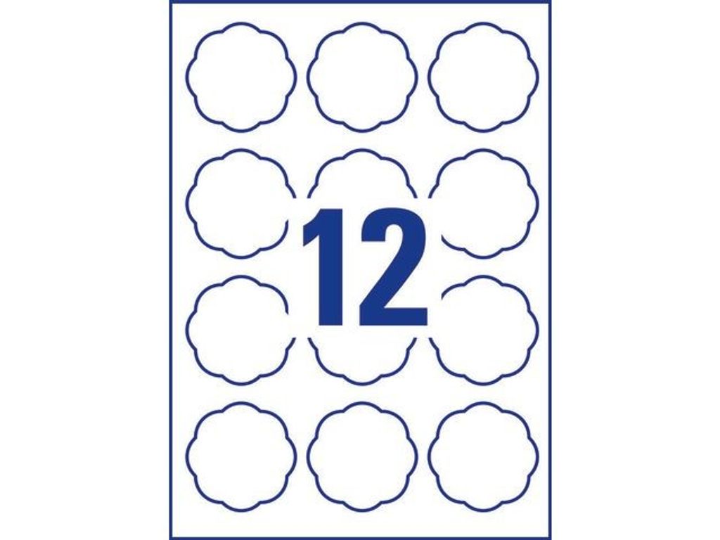 Beskrivning av Etikett AVERY blomform 60mm vit 120/fp