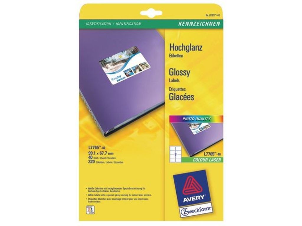 Glansiga etiketter perfekta som produktetiketter och säljmaterial. Blanka etiketter i fotopapperskvalitet som ger ett exklusivt utseende på dokument, broschyrer, kataloger, produkter m.m. Ger rika färger och skarpa konturer. Kan skrivas ut med alla svart/vit- och färglaserskrivare. Du kan enkelt, och helt gratis, designa och skriva ut dina Avery-produkter med mjukvaran Avery Design & Print som innehåller mallar, grafik och designmöjligheter. Du hittar den på www.avery.se/programvara. - Klorfri - Mått (b x h): 99,1 x 67,7 mm - Skrivare: laserskrivare - Limtyp: permanent - Färg: vit - Material: papper - Form: rektangulär med runda hörn - Format: A4