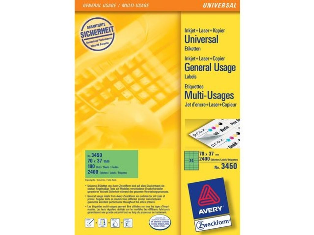 Beskrivning av Etikett AVERY grön 70x37mm 2400/fp