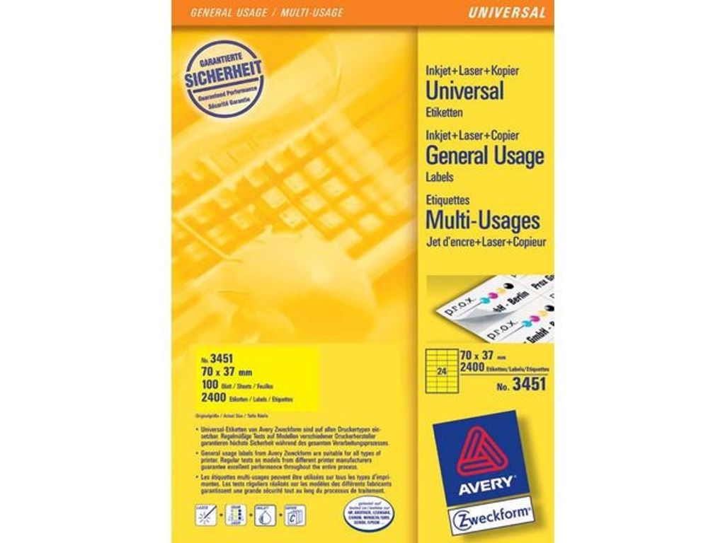 Beskrivning av Etikett AVERY gul 70x37mm 2400/fp