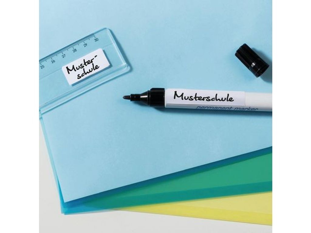 Permanentfästande etiketter för handskrift. Ett enkelt och snabbt sätt att märka föremål. Avsedda för handskrift med tuschpenna, kulpenna, märkpenna eller blyertspenna. Etiketten fäster säkert och permanent på papper, kartong, glas och plast. Perfekt för exempelvis brev, paket, mappar, pärmar, metallskåp m.m. - Mått: 18 x 12mm