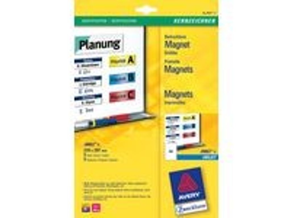 Etiketter som passar till märkning av metallhyllor och andra magnetiska ytor. Etiketter som passar till märkning av metallhyllor och andra magnetiska ytor. Passar som varningsskyltar eller informationsskyltar. Speciell inkjet yta som ger fina färger och skarp text. Gratis mallar och programvara till Microsoft Office kan laddas ner på www.avery.se - Passar i: inkjetskrivare - Antal per paket: 5 ark
