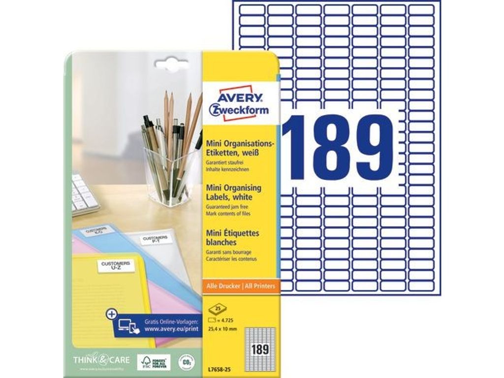 Etikett AVERY mini 25,4x10mm 4725/fp