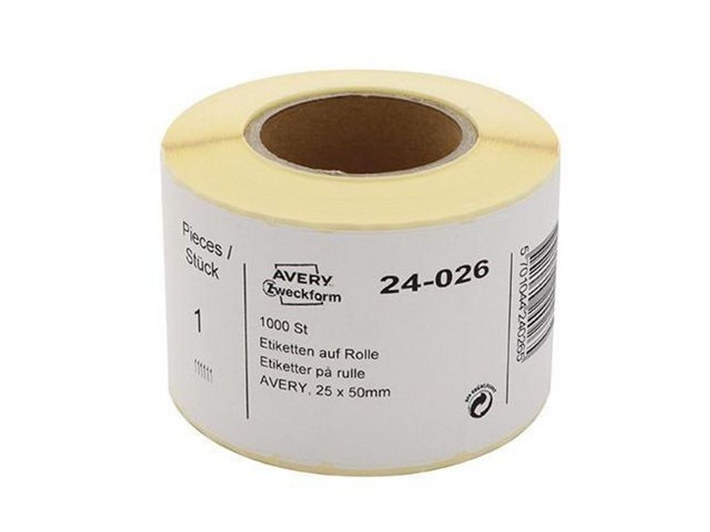 Etikett AVERY på rulle 50x25mm 1000/rl