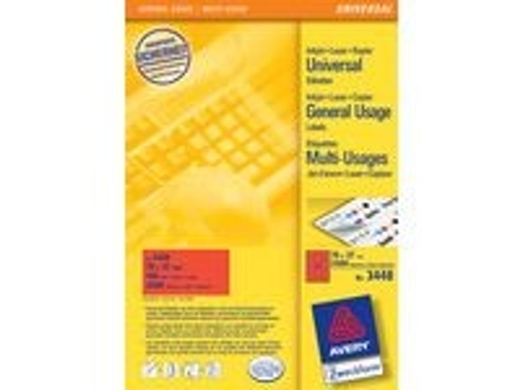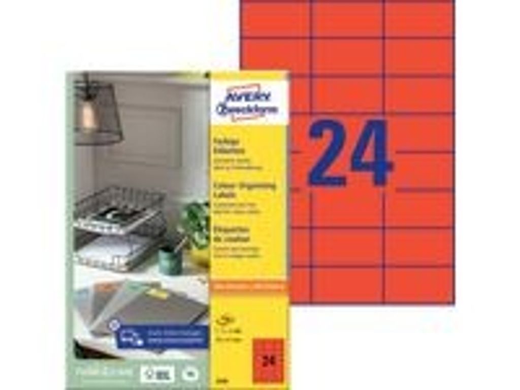 Beskrivning av Etikett AVERY röd 70x37mm 2400/fp