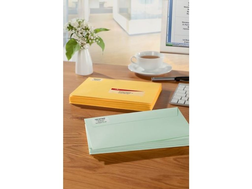 Genomskinliga adressetiketter som ger ett professionellt utseende på dina kuvert eller mindre paket. Tillverkade av polyester och innehåller QuickPEEL-teknik, vilket ger dig möjlighet att fästa etiketter snabbt. Dela bara upp etiketterna på arket längs perforeringen för att exponera etikettens kanter för att sedan dra och fästa. Det gör märkningen av din post så mycket snabbare. De skrivs ut med en knivskarp bild och klara färger och du kan även skapa din egen personliga prägel på etiketterna med hjälp av programvarumallar från Avery Design Print. Du hittar dem på avery.se/programvara. - Mått: 38,1 x 21,2 mm - Färg: transparent