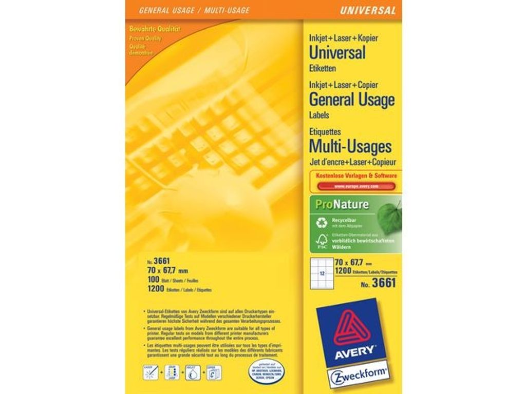 Etikett AVERY Ultragri 70x67,7mm 1200/fp