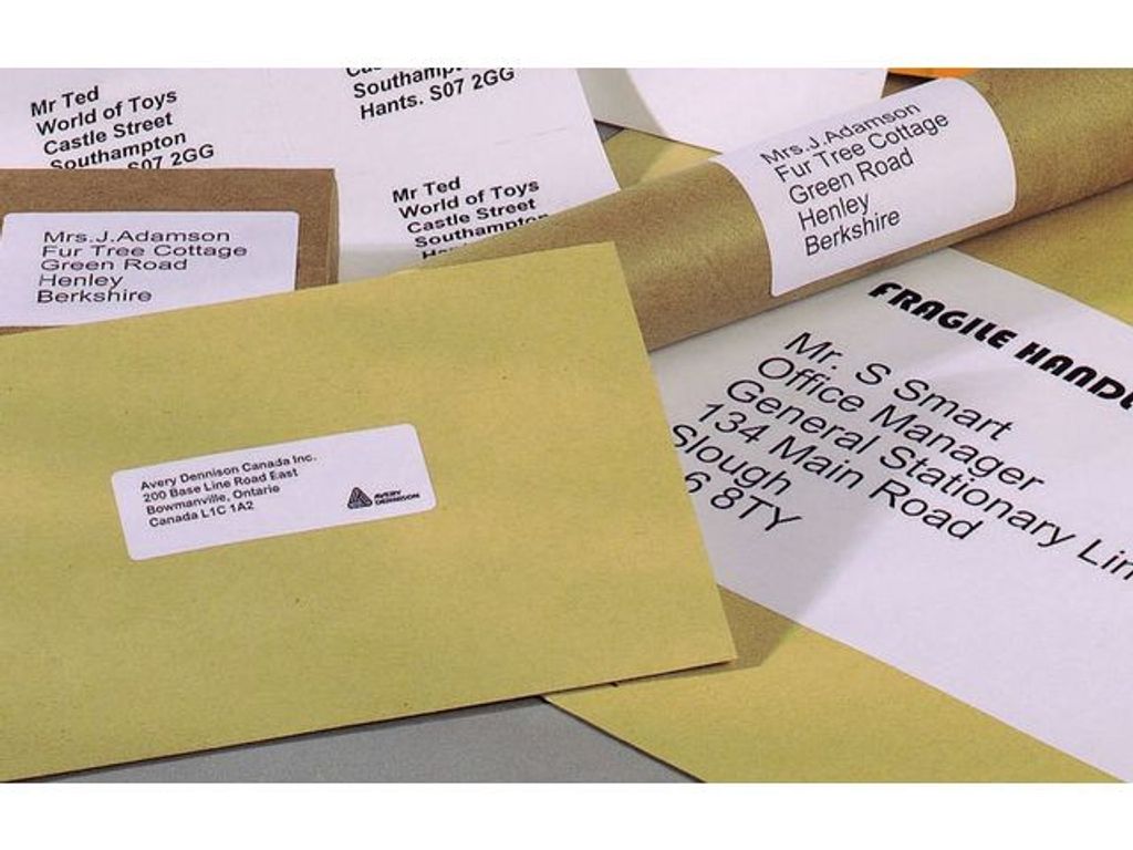 Adressetiketter utformade för att sitta fast och är utskrivbara i svartvitt eller färg. Ger ett professionellt utseende på dina kuvert eller mindre paket. JamFREE-garantin säkerställer att etiketterna smidigt behandlas i skrivaren och tack vare QuickPEEL-tekniken går det snabbt att fästa etiketter vilket gör märkningen av din post så mycket smidigare. De skrivs ut med en knivskarp bild och klara färger. Du kan även skapa din egen personliga prägel på etiketten med hjälp av programvarumallar från Avery Design som du hittar på avery.se/programvara. - FSC®-certifierade - Mått: 70x67,7mm