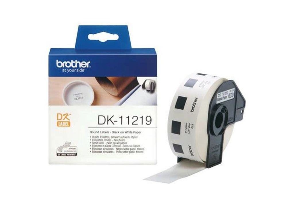 En praktisk lösning för att skapa etiketter i olika former och storlekar Brother original DK11219 svart på vit runda etiketter, är en praktisk lösning för att skapa etiketter i olika former och storlekar. De runda etiketterna a lämpar sig utmärkt både hemma och på jobbet. De kan användas till loggor, streckkoder, besöksbrickor och fraktinformation. - Brother DK11219 - Svart på vit - Rund etikett Ø 12 mm - 1 200 etiketter per rulle
