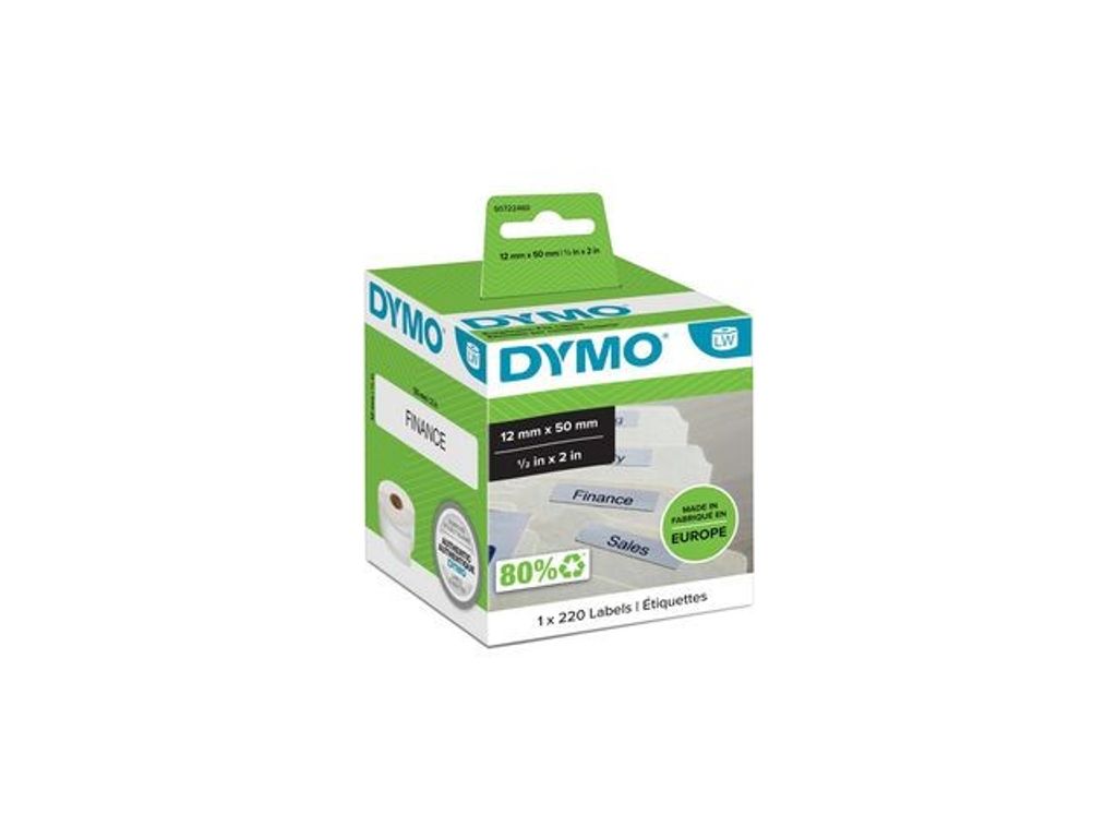 Dymo LabelWriter¿ hängmappsetiketter har en permanent självhäftande baksida som enkelt kan avlägsnas från underlaget. DYMO® LabelWriter™ hängmappsetiketter ger snygga, anpassade etiketter med en storlek på 50 x 12 mm som passar perfekt för långa adresser, filhantering och organisering hemma eller på kontoret. LabelWriter™-etiketter ger högkvalitativa utskrifter med maximal prestanda. Varje etikett dras enkelt av utan att lämna limrester och kan vid behov skrivas ut en i taget så att du undviker spill och trassel. Tack vare termisk överföringsteknik behövs varken bläck eller toner vid utskrift. En rulle innehåller 220 etiketter, vilket ger en kostnadseffektiv lösning för dina märkningsbehov. - Kompatibla med: DYMO LabelWriter - Universella LabelWriter-etiketter - För post, kuvert och pärmar - Permanent etikett - Lämnar inga limrester när den tas bort - Med direkt termisk utskriftsteknik - En rulle med 220 etiketter - Etikettstorlek: 50 x 12 mm (L x B) - Färg: Vit - Pappersetiketter är FSC-certifierade, förpackningen tillverkas av 80 % återvunnet material och FSC-certifierat material