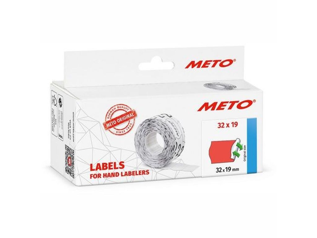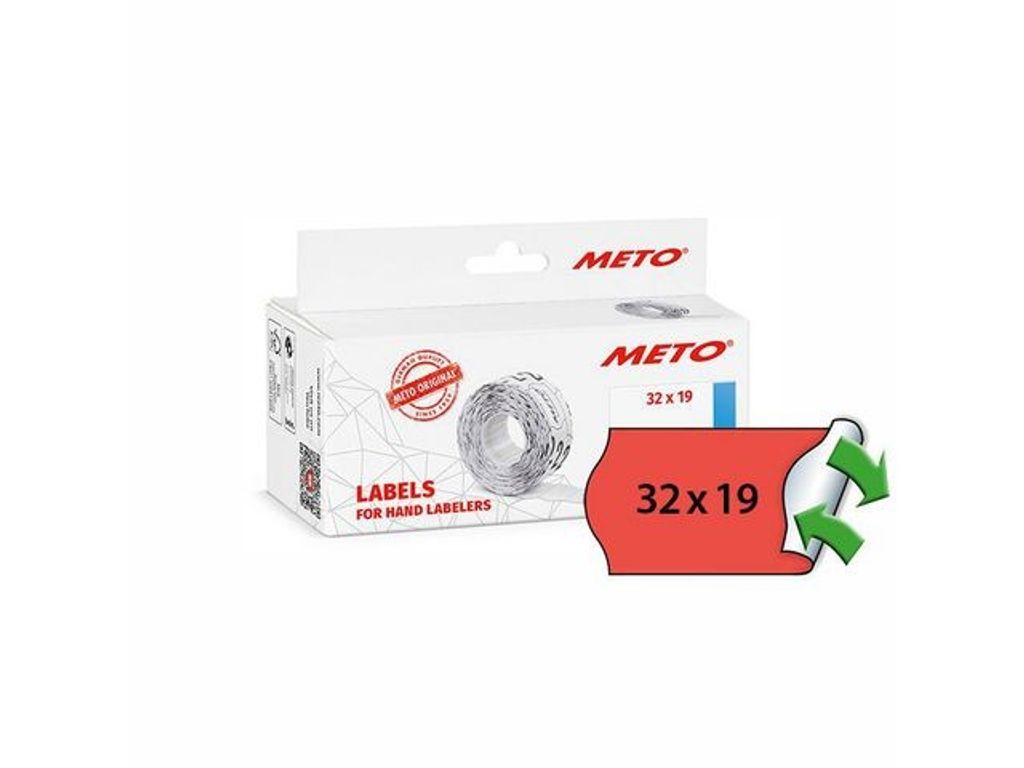 Passar till alla etikettmärkare med en etikettstorlek på 32×19mm. Med universalmått och UTC (universal transport cut) som säkerställer en stabil matning. Kompatibla med METO Classic, Arrow, Eagle, Flash, ProLine etikettmärkare samt etikettmärkare från Avery, Contact, Blitz, Tovel, Open, Sato, Etimark, Samark, Jolly, Herlitz, Prix med flera. Starkt synliga, röda etiketter som är perfekta vid märkning av rea- och kampanjvaror. Etiketterna fäster bra och har permanent lim. - Permanenta etiketter - Etikettstorlek: 32×19mm - 5000 etiketter per förpackning - 5 rullar om 1000 etiketter var