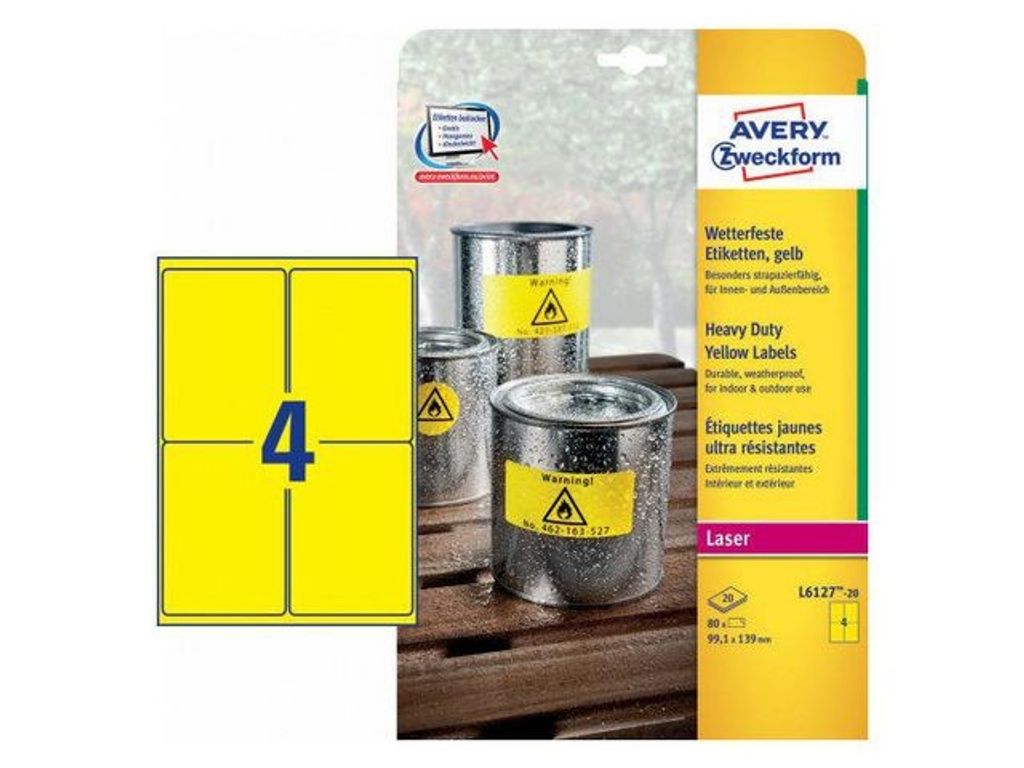 Gula, slitstarka etiketter perfekta för hållbar och permanent märkning av IT-utrustning, mobila enheter, verktyg, inventarier m.m. Averys starka, gula etiketter är perfekta för permanent, synlig och iögonfallande varningsskyltning och märkning, både inomhus och utomhus, vilket gör etiketten till ett perfekt val. Etiketterna är tillverkade i ett slitstarkt och hållbart polyestermaterial som inte kan rivas sönder och fäster permanent och säkert. Etikettpappret är klargult och papperskvaliteten ger vackra och skarpa utskrifter. Etiketterna klarar olja, smuts, vatten, fukt, UV-strålning och temperaturer från -20 °C till +80 °C, vilket gör etiketterna perfekta för utomhusbruk i alla väder och inomhusbruk i miljöer som kräver hög hållbarhet. Användningsområdena inom varningsskyltning och märkning är oändliga. För t.ex. elektriker, installatörer, tillverkningsföretag, måleriföretag, laboratorier, sjukhus, lagerbyggnader, osv. där arbetssäkerheten är viktig och det finns många varningar i samband med användning av tillverkningsutrustning, elskåp, mätskåp med mera. Etiketterna kan skrivas ut med alla svart/vita laserskrivare och Averys JamFREE™-garanti säkerställer en smidig utskrift. Du kan enkelt och lätt designa själv och skriva ut med gratisprogrammet Avery Design & Print på www.avery.eu/programvara. - Mått: 99,1 x 139mm - Färg: gul