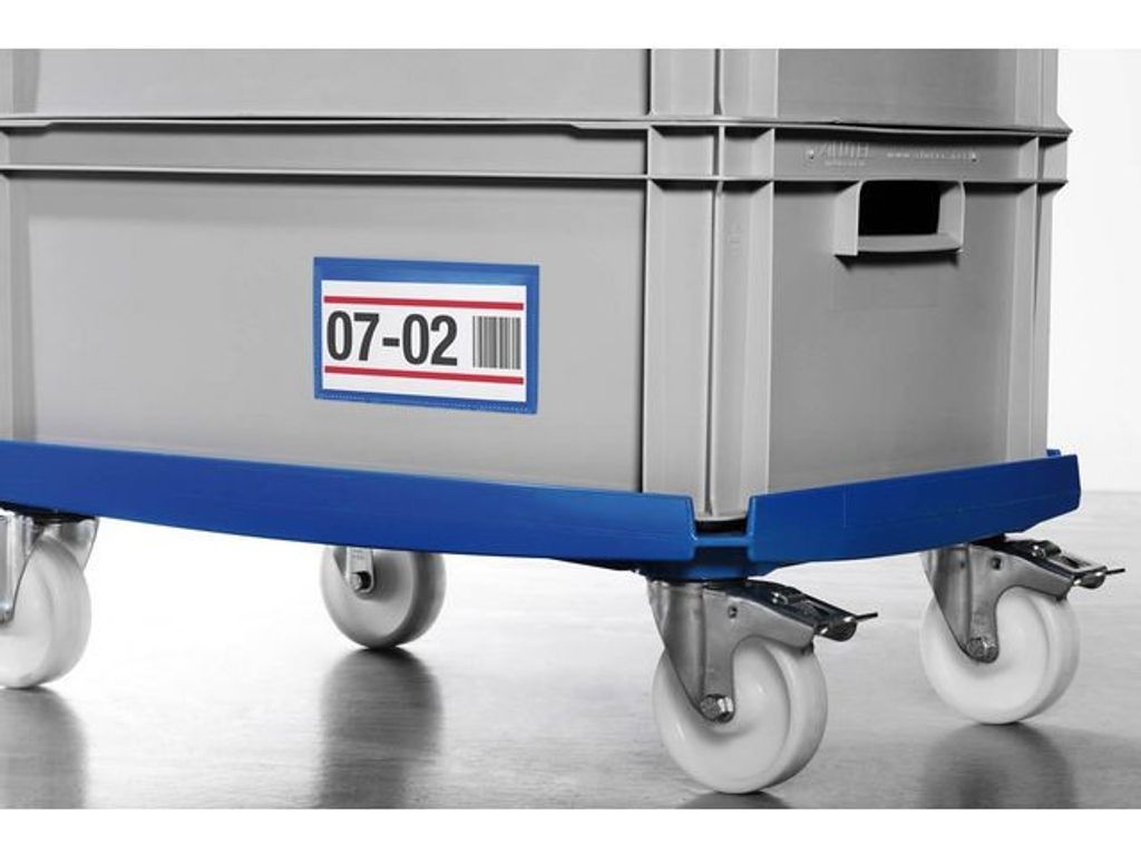 Tydlig och översiktlig märkning av hyllor, skåp, dörrar, containrar och andra utrymmen som förbättrar och effektiviserar arbetsprocessen på lager och i produktionsanläggningar. De självhäftande etiketthållarna av slitstark polypropylene går att läsa med skanner och skyddar de utbytbara etiketterna från smuts. Två klisterremsor på baksidan gör att fickan sitter på plats. Gratis mall för etiketten finns på www.duraprint.se. - Innermått: 150 x 67 mm (B x H) - Yttermått: 163 x 83 mm (B x H)