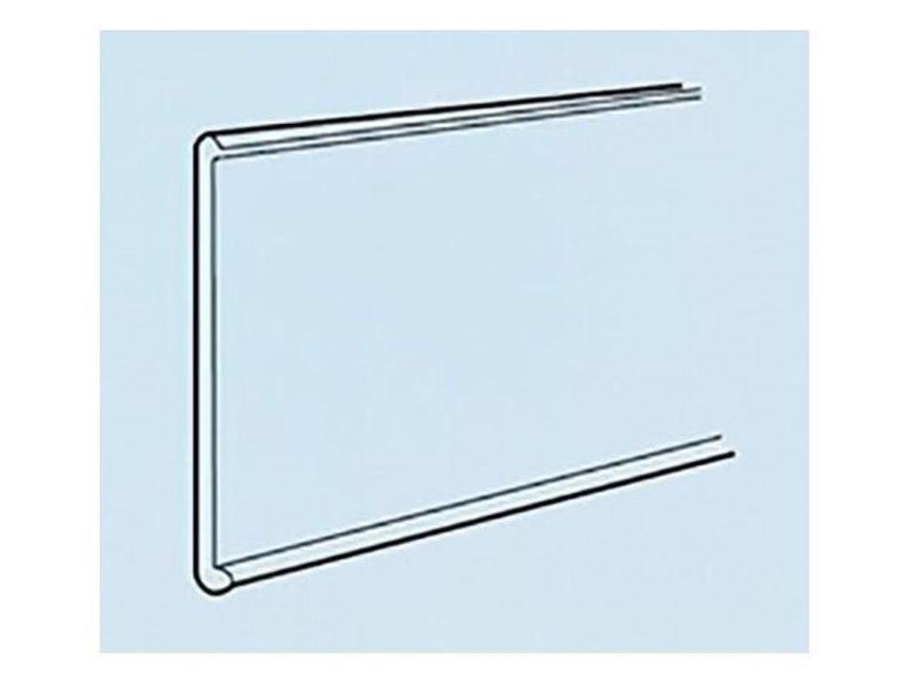 Beskrivning av Etiketthållare 26x105mm självh 100/fp Hyllkantslist med tejp och stödkant. - Mått: 26x105mm - Självhäftande