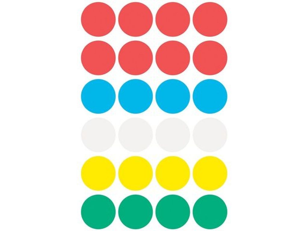 Praktiska färgkodningsprickar som skapar ordning och överblick över mappar, handlingar, dokument, registerkort m.m. Är även utmärkta för att markera t.ex. avreseplats, destination och potentiella övernattningsställen på kartan eller för att markera deadlines och datum i projektplaner, böcker eller vid intern semesterplanering på kontoret. - Avery produkt 3089 - Etikettformat: Ø18mm - Färg: Sorterade färger
