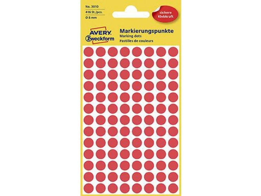 Beskrivning av Färgkodningsprick AVERY Ø8mm röd 416/fp