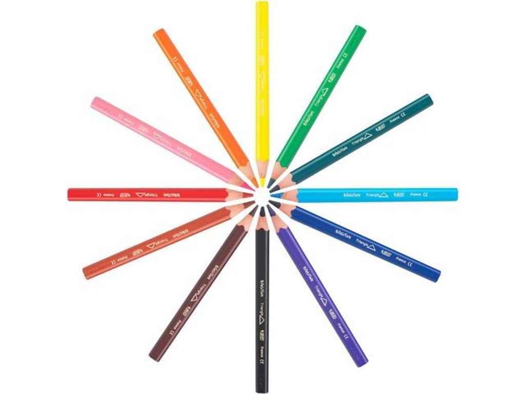 BIC Kids Evolution Triangle färgpennor är speciellt utformade för barn från 2 år med sin trekantiga form. Dessa pennor har extra starka och stöttåliga spetsar, vilket minskar risken för att de ska gå sönder när barnen använder dem för att färglägga. De är också träfria och tål att bitas på, vilket gör dem säkrare för småbarn, och om de råkar brytas av, flisar de inte sönder. Tillverkade av 50 % återvunnet material och miljömärkta med NF Environnement eco-label, är dessa pennor också ett bra val för miljön. Pennan är gjord av ett flexibelt grannulat, vilket gör att den lätt kan böjas utan att gå sönder. Dess stöttåliga egenskaper innebär att även om den slås mot en bordskant kommer inte blystiften inuti att brytas, eftersom de är fastgjutna i plastgrannulatet.
