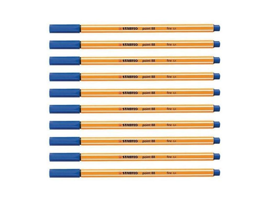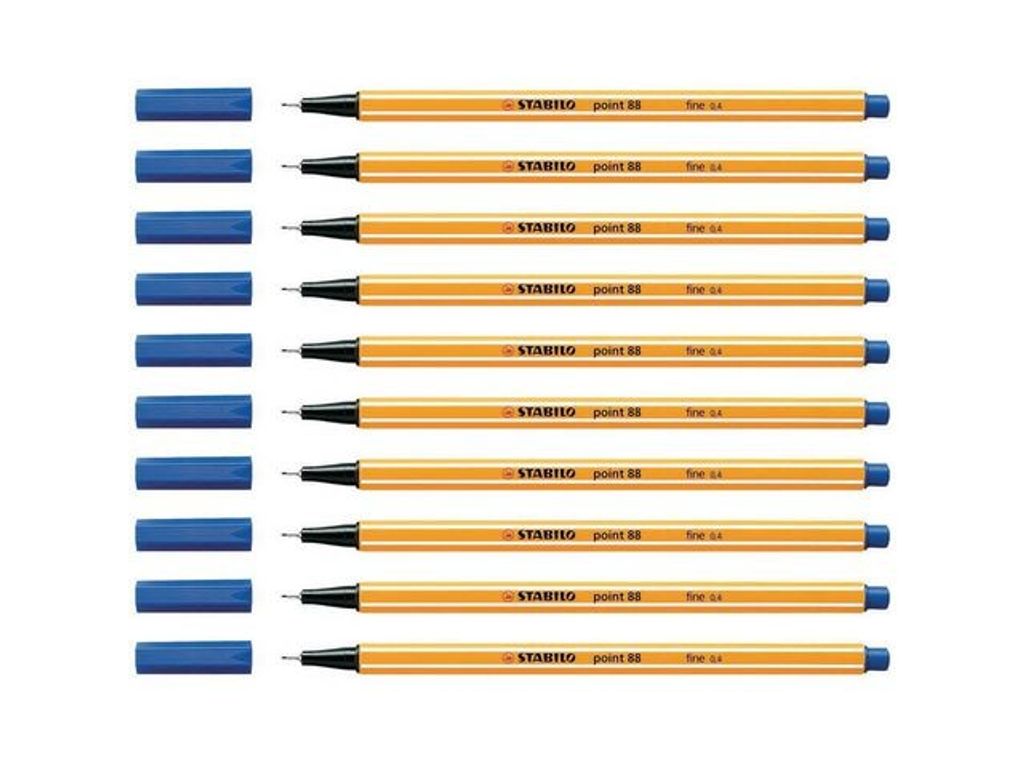Välkända STABILO® point 88® är idealisk för att skriva, rita och skissa. Den har ett vattenbaserat bläck med starka färger som klarar sig länge utan att torka även om den inte har någon kork. STABILO® point 88® med tunn spets är en penna som utformats för lång hållbarhet och passar utmärkt för skol- och proffsbruk eftersom den metallförstärkta spetsen möjliggör detaljerat arbete som att rita diagram eller skisser och tekniska ritningar. Pennans tunna metallspets passar utmärkt för användning med mallar och linjaler. Pennan har en linjebredd på 0,4 mm, en sexkantig randig design och en ventilerad säkerhetskork. Pennan har dessutom ett luktfritt vattenbaserat bläck så att den kan ligga utan kork i upp till 24 timmar utan att torka. Finelinerpennan STABILO® point 88® finns i blandade klara färger och är ett populärt val bland konstnärer och barn tack vare de tydliga pigmenterade linjerna. - Vattenbaserat bläck - Huv - Linjebredd: 0,4 mm - Textfärg: Blå - Färg pennkropp: Orange (Huv i textfärg) - Vattenbaserat bläck