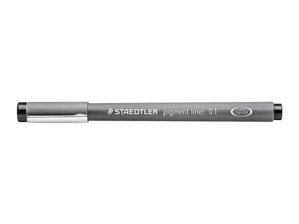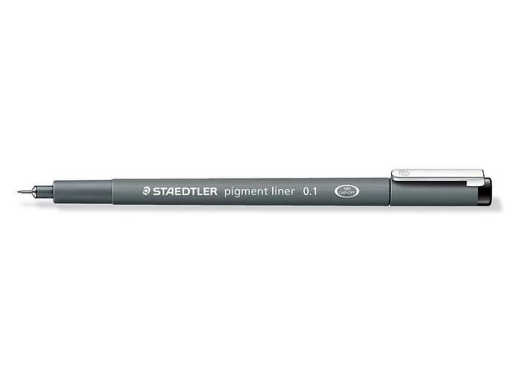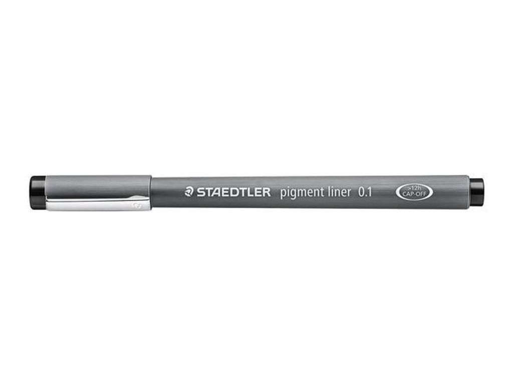 Fineliner för ritningar, skrift och skissande. Pigment liner 0,1 mm. Lång metallspets, idealisk för användning med linjaler och mallar. Pigmentfärg, arkivbeständig (enligt ISO 14145-2), ljusfast, vattenfast. Raderbar vid användning på matt ritfilm, blöder inte vid överstrykning. Cap off - kan lämnas utan kork i minst 12 timmar utan att torka (Standard atmosfär enligt ISO 554) Pennkropp i PP ger lång livslängd. Svart bläck - Permanent bläck - Med huv - Spetsbredd: 0,1 mm - Textfärg: Svart - Färg pennkropp: Grå - Vattenbaserat bläck - Arkivbeständig (enligt ISO 14145-2) -