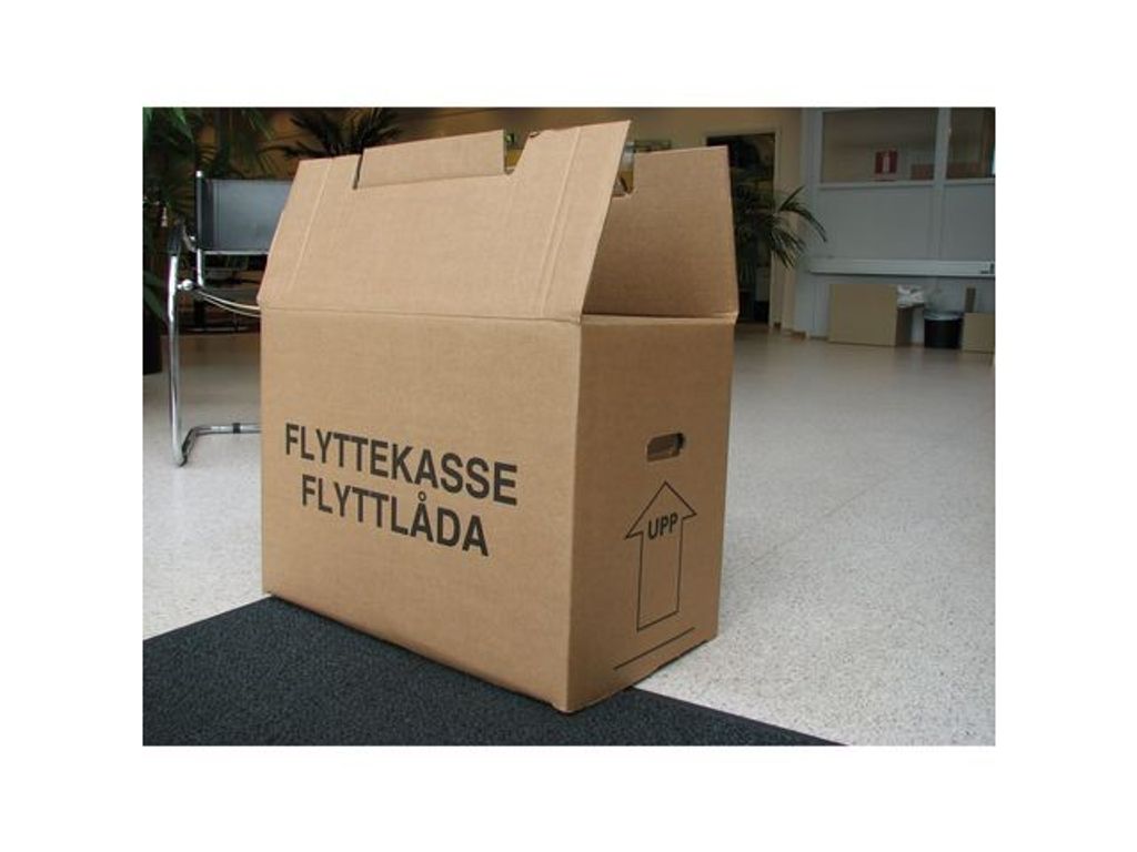 Flyttlåda med förstärkta kanter som gör den stabil och skyddar dina varor från att ramla ut eller skadas. Perfekt för flytt och lagring. Den är tillverkad i stark wellpapp, vilket ytterligare hjälper till att hålla dina varor säkra. Dessutom har den praktiska handtag på sidan som gör att du enkelt kan bära den. Lådan har en självlåsande botten och är tätad med överlappande flikar och låsbleck. En post- och förvaringslåda som är enkel att sätta ihop– följ bara instruktionerna på lådans undersida. - Volym: 75 dm3 - Dubbelwell, 7mm. - Robust post- och förvaringslåda - Enkel att sätta ihop - Kanter som enkelt låses fast - Förstärkta kanter för skydd - Praktiska handtagshål - Återvinningsbar - Material: Wellpapp - Mått (L x B x H): 560 x 330 x 406 mm - Färg: Brun