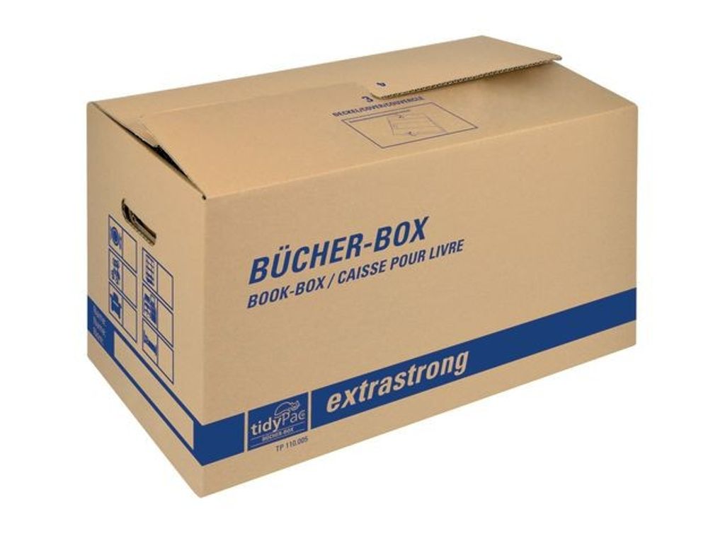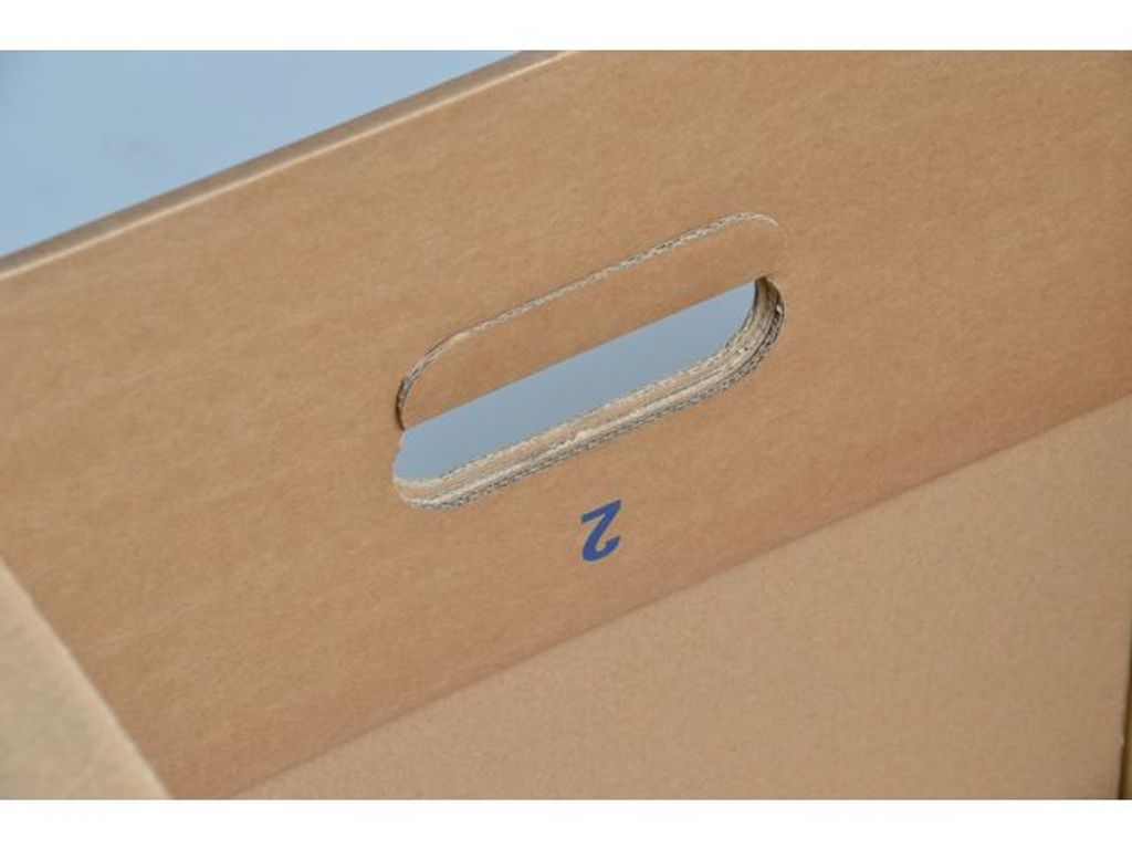 Robust och stapelbar flyttkartong med förstärkta handtag och en stark botten som är helt överlappande. Flyttlåda TidyPac är tillverkad i 2-lagers wellpapp. Utrustad med standardtryck, något som kan användas för markering av innehållet. Enkel att försluta utan att använda ytterligare förslutningsmedel. - Mått (HxBxD): 58 x 30 x 33 cm