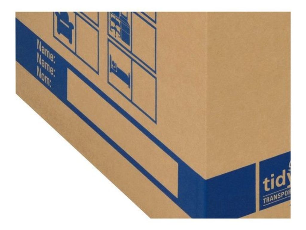 Robust och stapelbar flyttkartong med förstärkta handtag och en stark botten som är helt överlappande. Flyttlåda TidyPac är tillverkad i 2-lagers wellpapp. Utrustad med standardtryck, något som kan användas för markering av innehållet. Enkel att försluta utan att använda ytterligare förslutningsmedel. - Innermått (LxBxH): 680x350x355 mm - Yttermått (LxBxH): 690x355x370 mm -