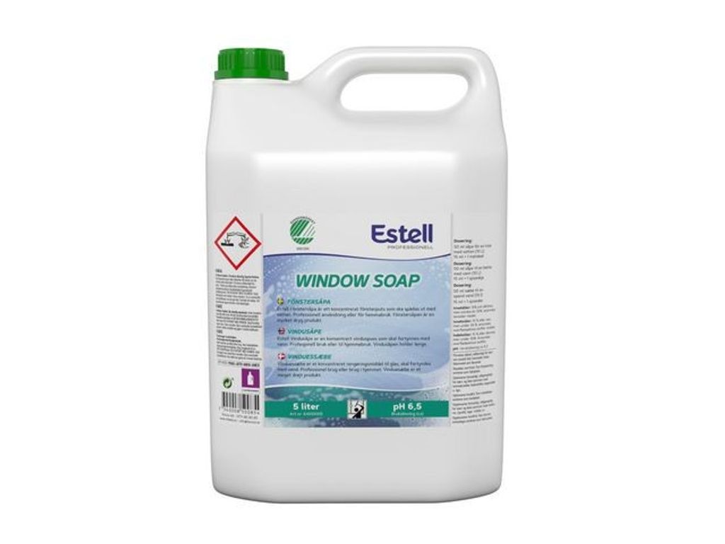 Lättarbetad koncentrerad fönstersåpa utan parfym. Estell Fönstersåpa är ett koncentrerat fönsterputs som ska spädas ut med vatten. Professionell användning eller för hemmabruk. Fönstersåpan är ett mycket dryg. Såpan kan också användas för lättare rengöring på hårda vattentåliga ytor. Fönstersåpa är ett lättarbetat och smidigt medel som ger ett skinande och rent resultat. - Dosering: 50ml till 10l vatten - pH värde: 6,5 - Utseende: Färglös vätska
