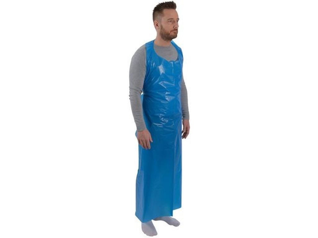 Beskrivning av Förkläde 850x1300mm påse blå 100/fp Förkläde för engångsbruk. Används som skydd mot stänk, smuts mm inom sjukvården och livsmedelshantering. - Livsmedelsgodkänd - Mått: 850 x 1300 mm - Tjocklek: 35 my - Material: LDPE - Färg: Blå