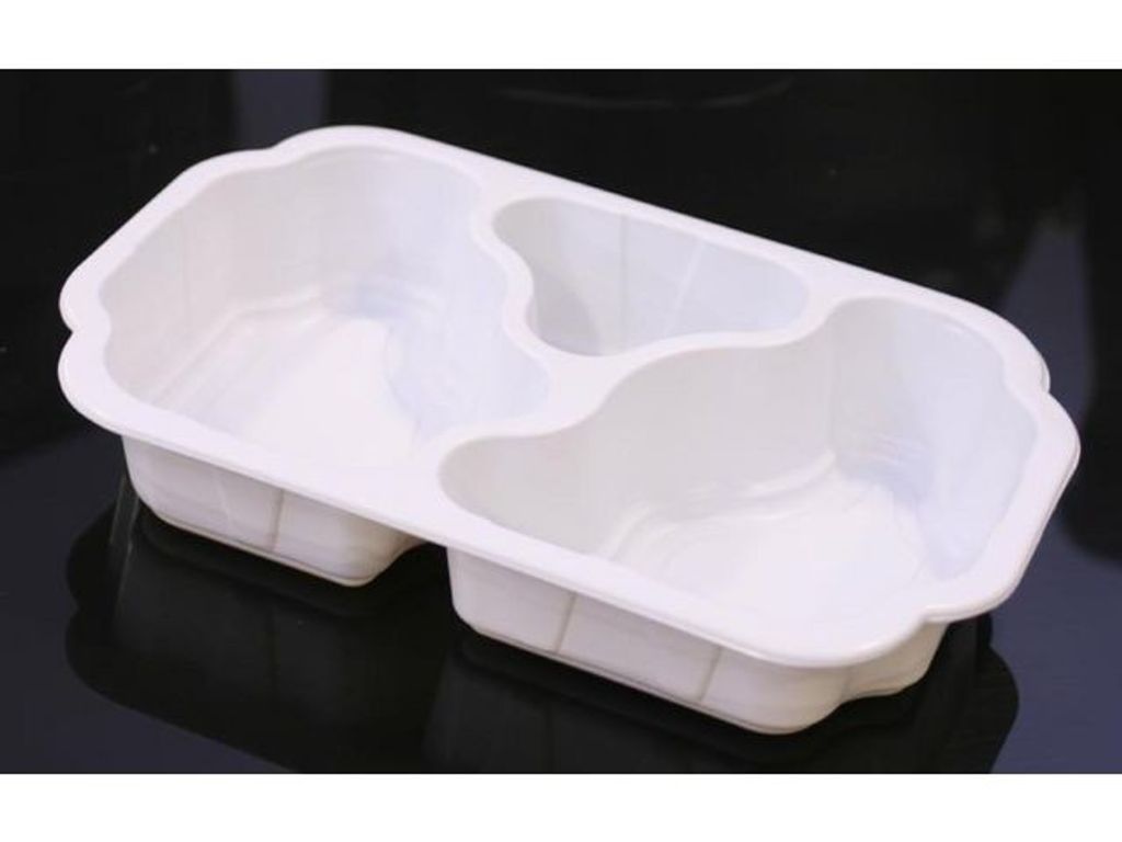 Perfekt för take-away! Portionsform TechPack TakeHome, 3-fack i vit mineralfylld PP, passar för varm och kyld mat - Mått: 250x159x47 mm - Volym: 500+500+150 ml