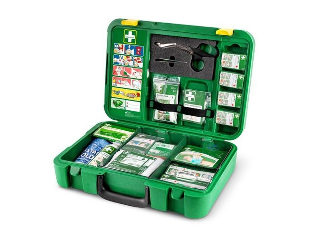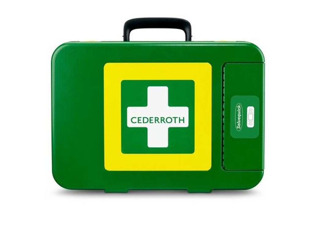 Det ger en trygghetskänsla att veta att din Första Hjälpen-utrustning alltid finns tillhands - redo att användas. Cederroth First Aid Kit XL är ett bra komplement till väggfast utrustning för verksamheter som ofta är på språng eller som ryck-väska att ta med när hjälpen behövs längre bort. Cederroths Första Hjälpen-Kits har uppgraderats med ny design i signalfärger och förbättrad användarvänlighet, de är också utrustade med välbeprövade produkter som är enkelt utformade och försedda med tydliga instruktioner. Robust och tålig väska i hårdplast för att hålla damm, fukt och smuts utanför även i hårda miljöer. Salvequick Plåsterautomat på utsidan gör det enkelt och snabbt att ta ett plåster samtididigt som innehållet i väskan lämnas orört tills det verkligen behövs. I locket finns bland annat handskar, andningsmask, sax och pincett. Röda refilldekaler signalerar när det är dags att fylla på. Väskan kan kompletteras med ögondusch. Väskan är rejält utrustad med produkter för små och stora sår, stukningar, brännsår, cirkulationssvikt, mindre ögonskador samt skyddsprodukter vid HLR. Vägghållare finns som tillbehör. - Plåsterautomat på utsidan - Innehåll: - Första Hjälpen-instruktion - 1 Andningsmask - 4 par Handskar - 4 Safety Hand Cleanser - 1 Räddningsfilt - 1 Sax - 1 Pincett - 45 Salvequick Plastplåster - 40 Salvequick - Textilplåster - 10 Salvequick Sårtvättare - 3 Cederroth 4-in-1 Blodstoppare - 4 Cederroth 4-in-1 mini Blodstoppare - 3 Metalliserade kompresser 20 x 40 cm - 2 Fästnät - 2 Cederroth Burn Gel Dressing - 2 Soft Foam Bandage, 6 cm x 40 cm - 2 Elastiska bindor 8 cm x 4 m - 1 Salvequick Cold Pack - 1 Eye Wound Cleansing Spray - Mått: B 420 x H 300 x D 118 mm