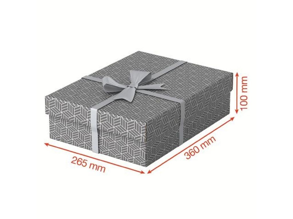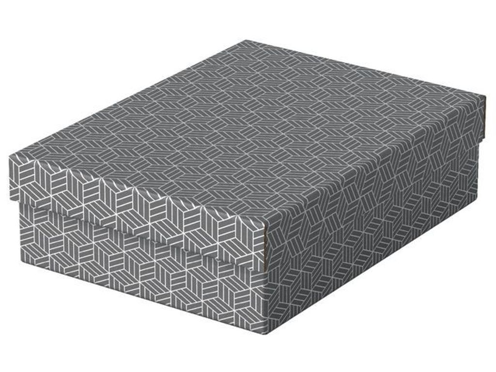 Set med tre lådor i samma storlek. Snygga och moderna förvaringslådor i FSC-märkt kartong, med avtagbart lock, perfekt för förpackning av presenter eller för förvaring hemma eller på kontoret. Förvara mindre föremål i kartongerna i exempelvis hyllor eller i kubförvaringsenheter, det blir enkelt att hålla ordning och lätt att hitta. Tillverkad av stark, 100% återvunnen och 100% återvinningsbar wellpapp som är FSC-certifierad. Geometrisk mönster i dubbla färger som ger stil till din förvaring. Levereras platt förpackad och är snabb och enkel att montera, lådsidorna viks omlott, vilket gör lådorna extra stabila. - Mått: 265 x 100 x 360 mm - Färg: grå - - Volym: 7 Liter