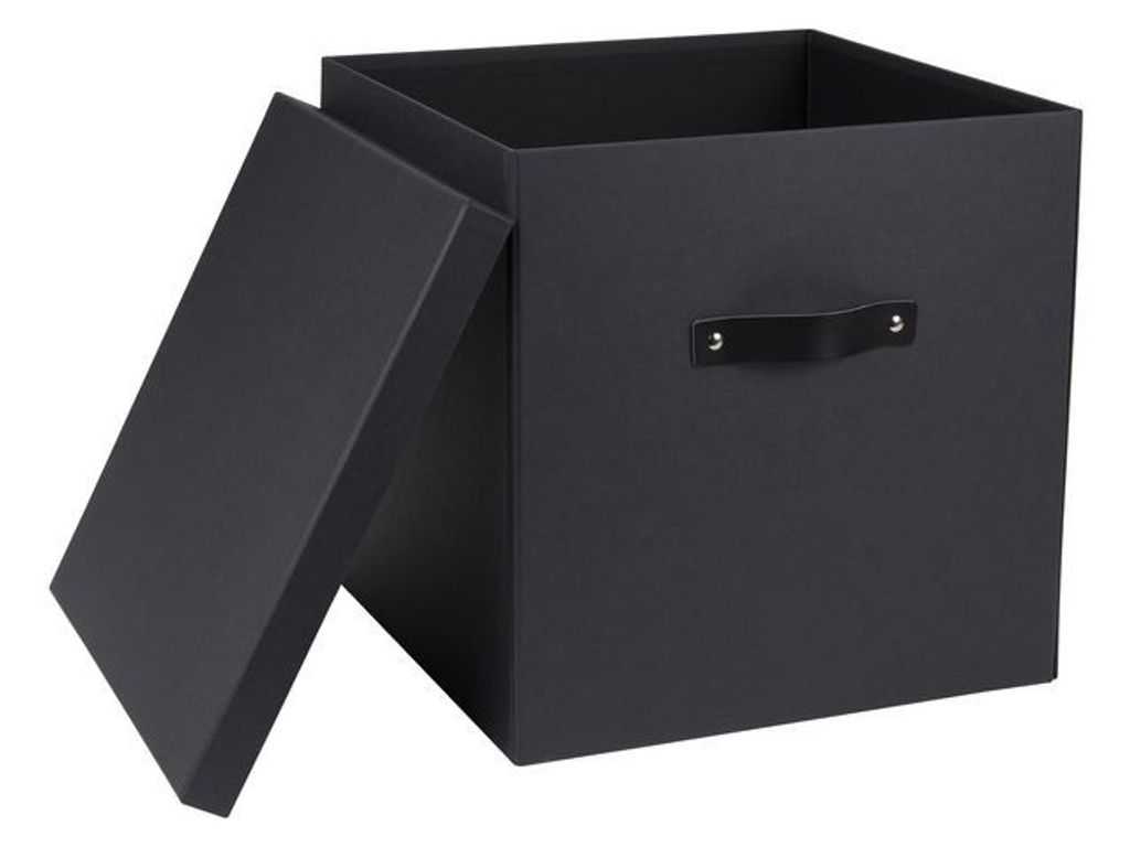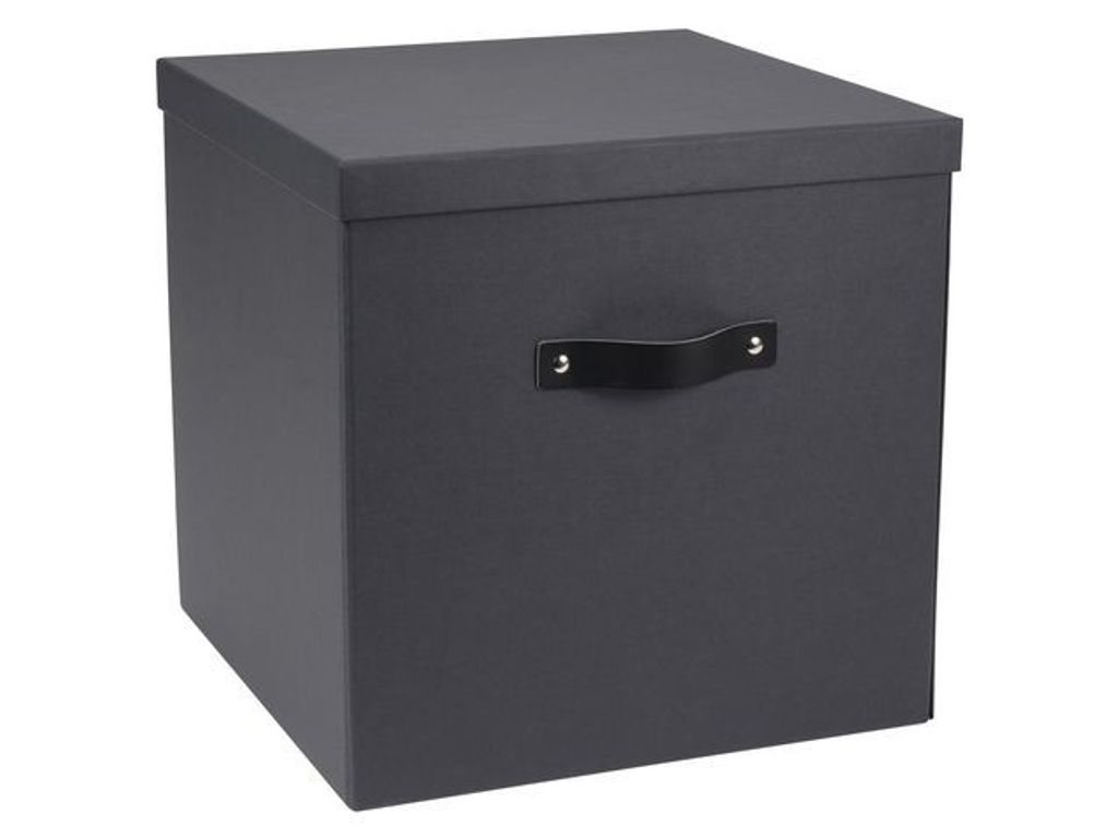 Snygg förvaringsbox med lock och läderdetaljer. Förvaringsbox för större förvaring. Elegant design med läderhandtag, som passar i de flesta hem och kontor. Enkel montering utan verktyg och skruv. - Tillverkade av 100 % återvunnet returpapper - FSC-certifierat - Mått (LxBxH): 31,5x31,5x31 cm - Volym: 30,75 Liter