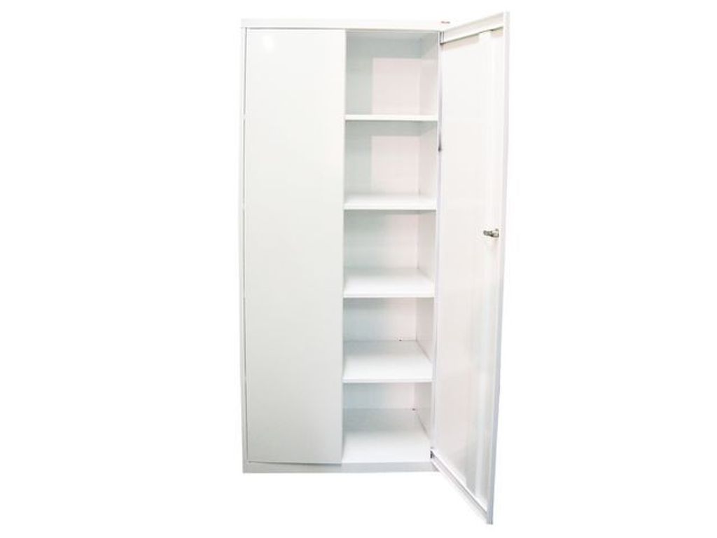 Skydda dina dokument och andra prylar i detta säkra skåp! Helsvetsat förvaringsskåp med fasta hyllplan anpassade för pärmar. - Lås med 2 nycklar - Kapacitet ca 65 pärmar - Mått (BxHxD): 80 x 182 x 40 cm - Vikt: 65 kg - Levereras färdigmonterat