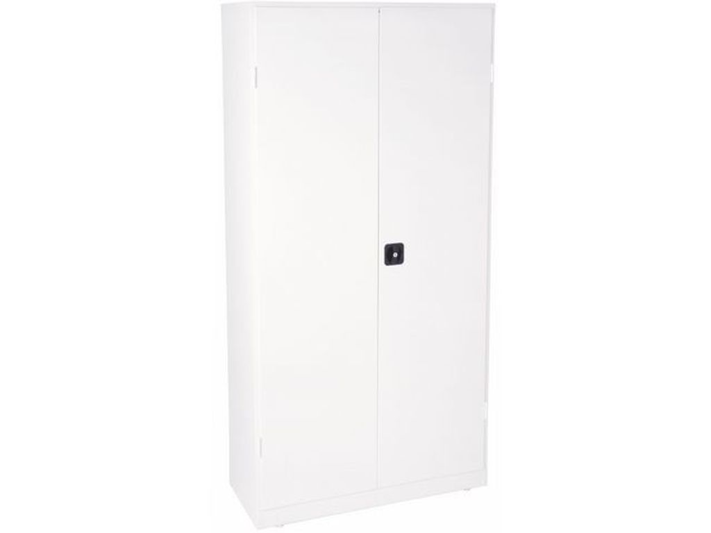 Skydda dina dokument och andra prylar i detta säkra skåp! Det här allmänna förvaringsskåpet har justerbara hyllor som du kan anpassa efter dina behov. Det här användarvänliga och praktiska förvaringsskåpet har hyllor som kan justeras för att passa dina lagringskrav. Dess låsmekanism bidrar till att skydda föremål som förvaras inuti. Det är tillverkat av 1 mm tjockt lackerat stål som är robust och tål slitage. Säkra alla dina viktiga dokument och andra artiklar i det här stående arkivskåpet. - Levereras med justerbara hyllor - Har ett låssystem med 2 knappar - Material: Lackerat stål - Färg: Vit - Vikt: 85 kg - Mått: 197 x 100 x 42,5 cm