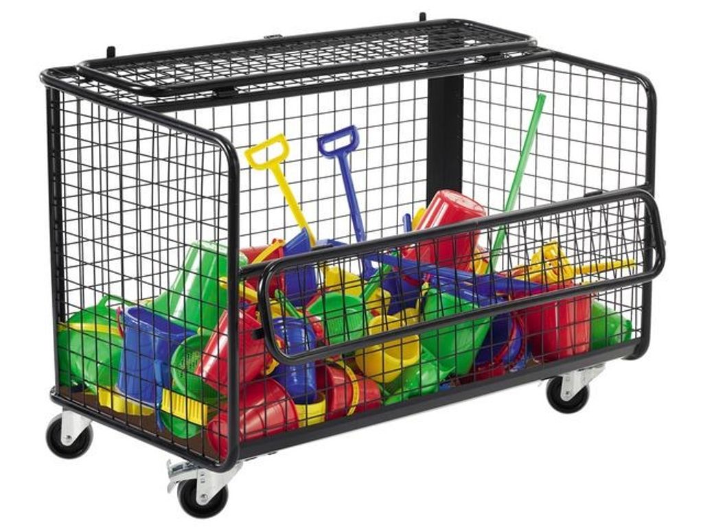 Kraftig förvaringsvagn som även går att använda utomhus, med bottenskiva. Förvaringsvagn med dubbla luckor som gör det enkelt för barnen att komma åt bollar eller leksaker som förvaras i vagnen. I botten ligger en väderbeständig träskiva för att förhindra att bollar eller leksaker faller ut genom botten. Låsögla finns för att kunna låsa båda luckorna (lås ingår ej). Stora och kraftiga hjul gör det enkelt att förflytta vagnen, två av hjulen är även låsningsbara. - 5 års svetsgaranti - Levereras färdigmonterad - Mått: 118x82x66 cm